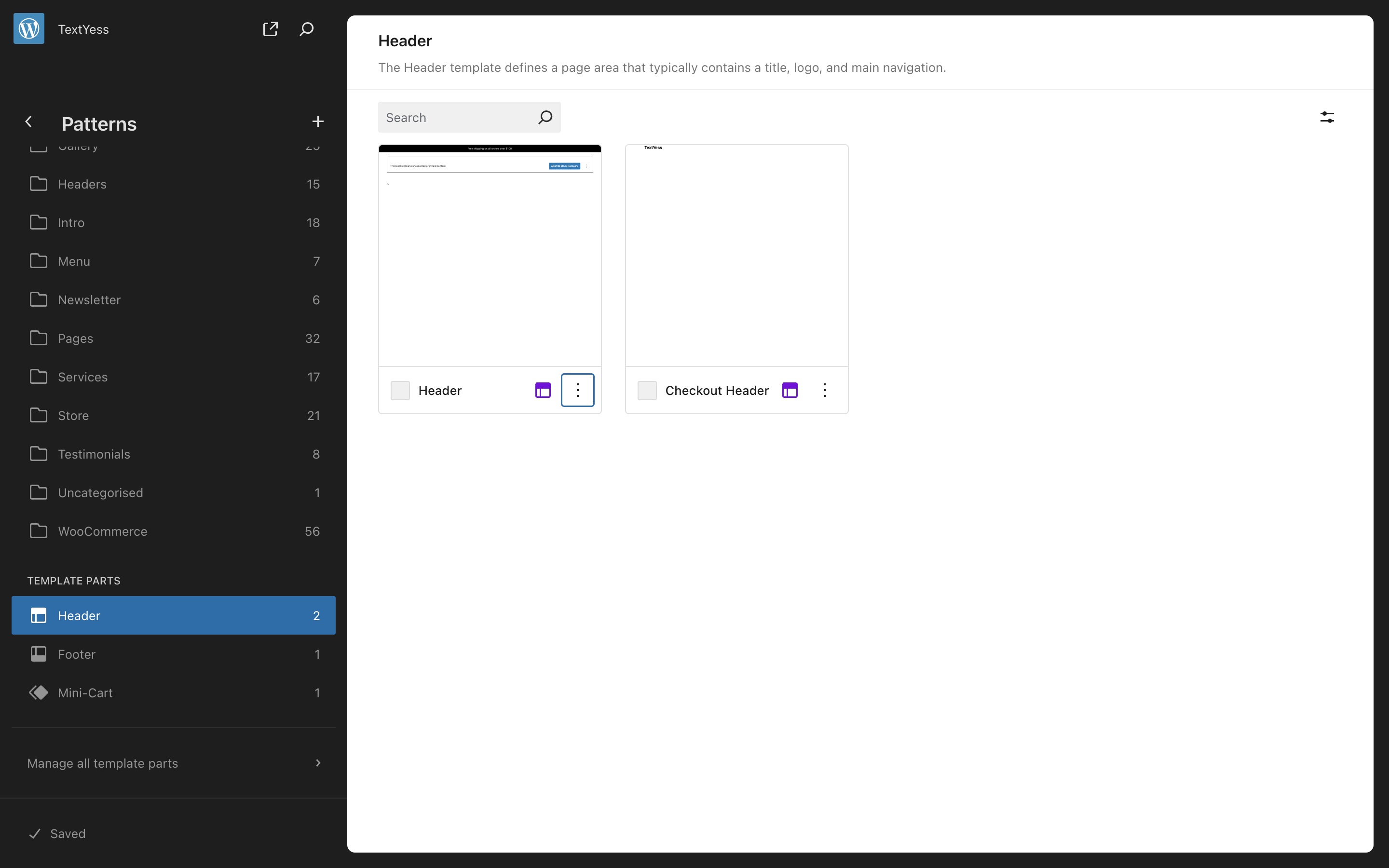 Open the Header pattern